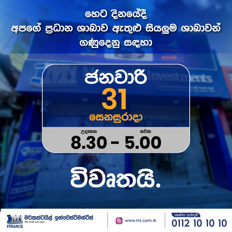 මර්කන්ටයිල් ඉන්වෙස්ට්මන්ට්ස් ඇන්ඩ් ෆිනෑන්ස් (MI Finance) සමාගම, ශ්‍රී ලංකාව පුරා විසිරී සිටින ජනතාවට මුල්‍ය
